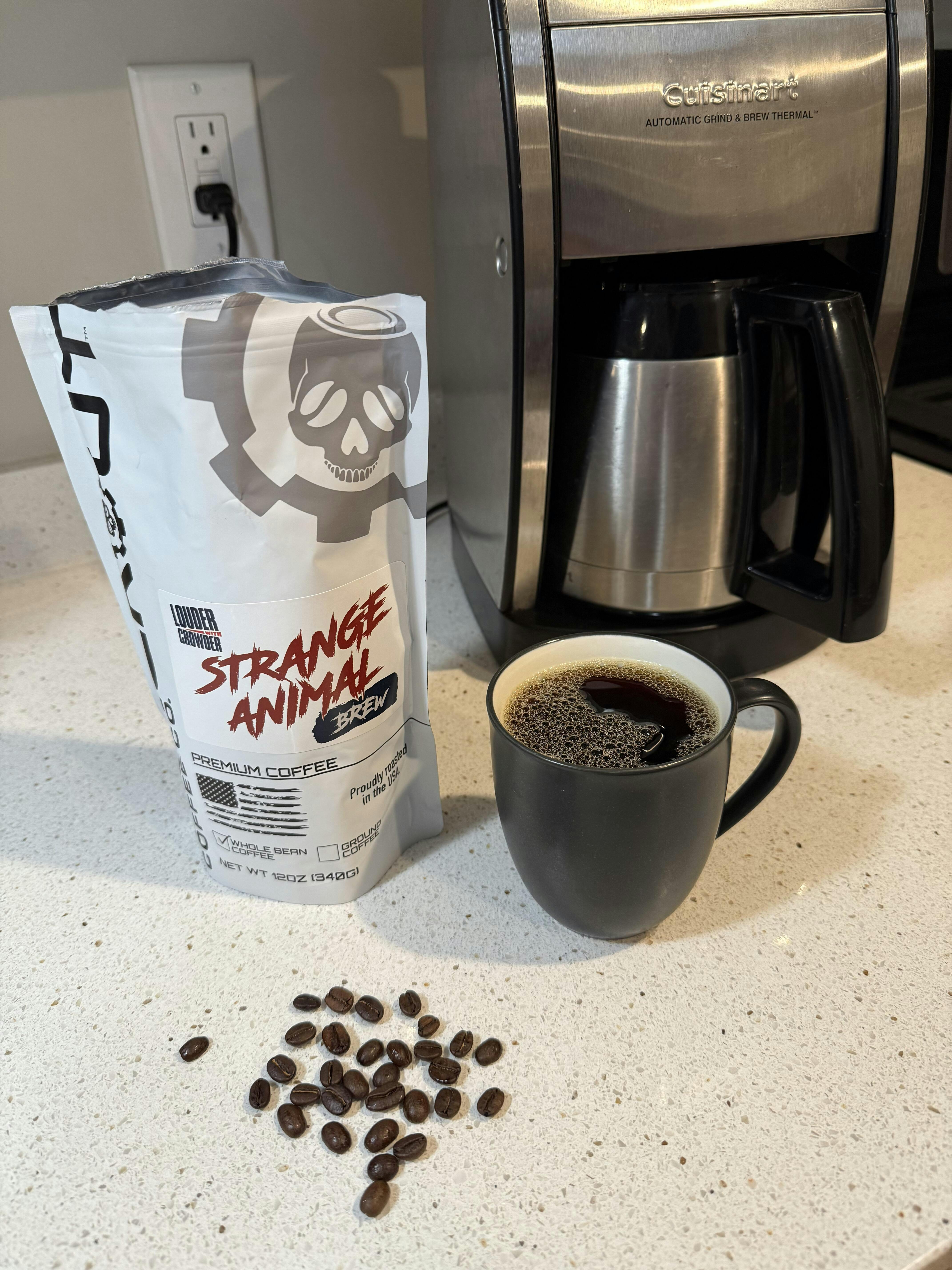 Roasted fresh by Blackout Coffee Co., Strange Animal Brew is a perfectly balanced medium roast that hits smooth but roars with bold flavor. Crafted from the top Arabica beans, it’s made for early-morning battles, late-night rants, and every time you need to fight back against the madness, one sip at a time.