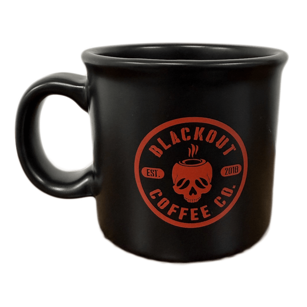• Matte black finish with bold red Blackout Coffee logo