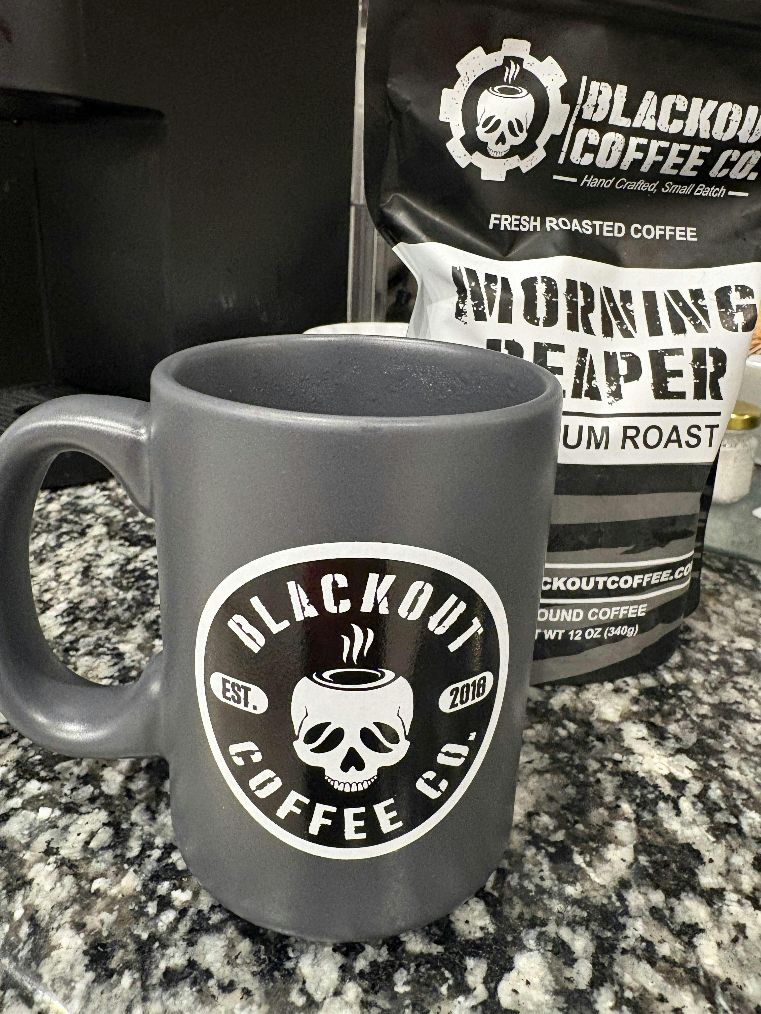 Show your patriotism with every sip. The USA Patriot Mug pairs rugged design with American spirit, featuring a bold distressed U.S. flag on one side and the Blackout Coffee Co. skull logo on the other.