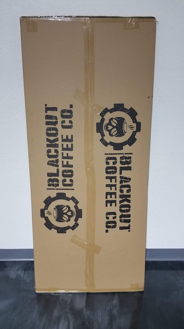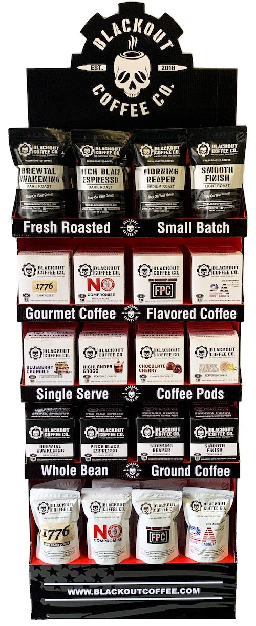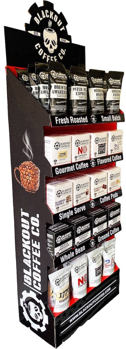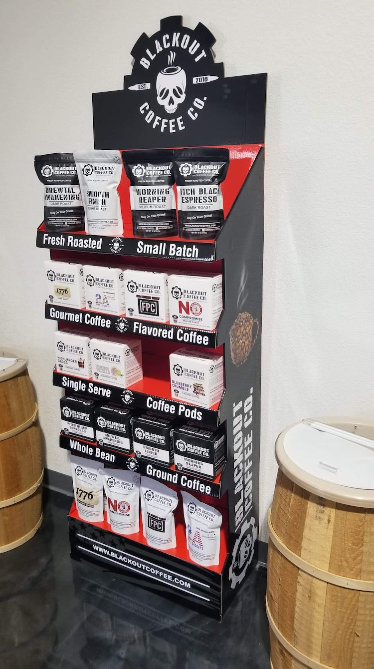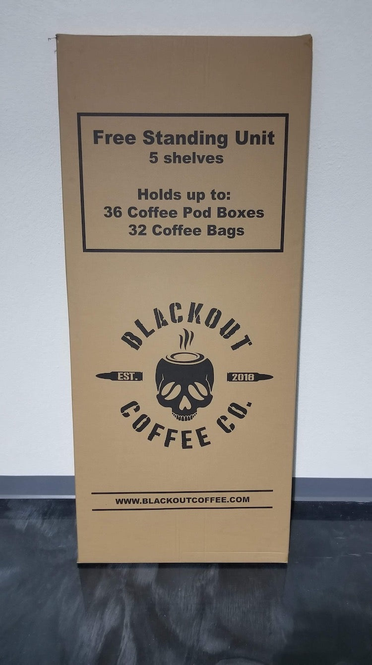 Blackout Coffee custom free standing unit plus coffee.