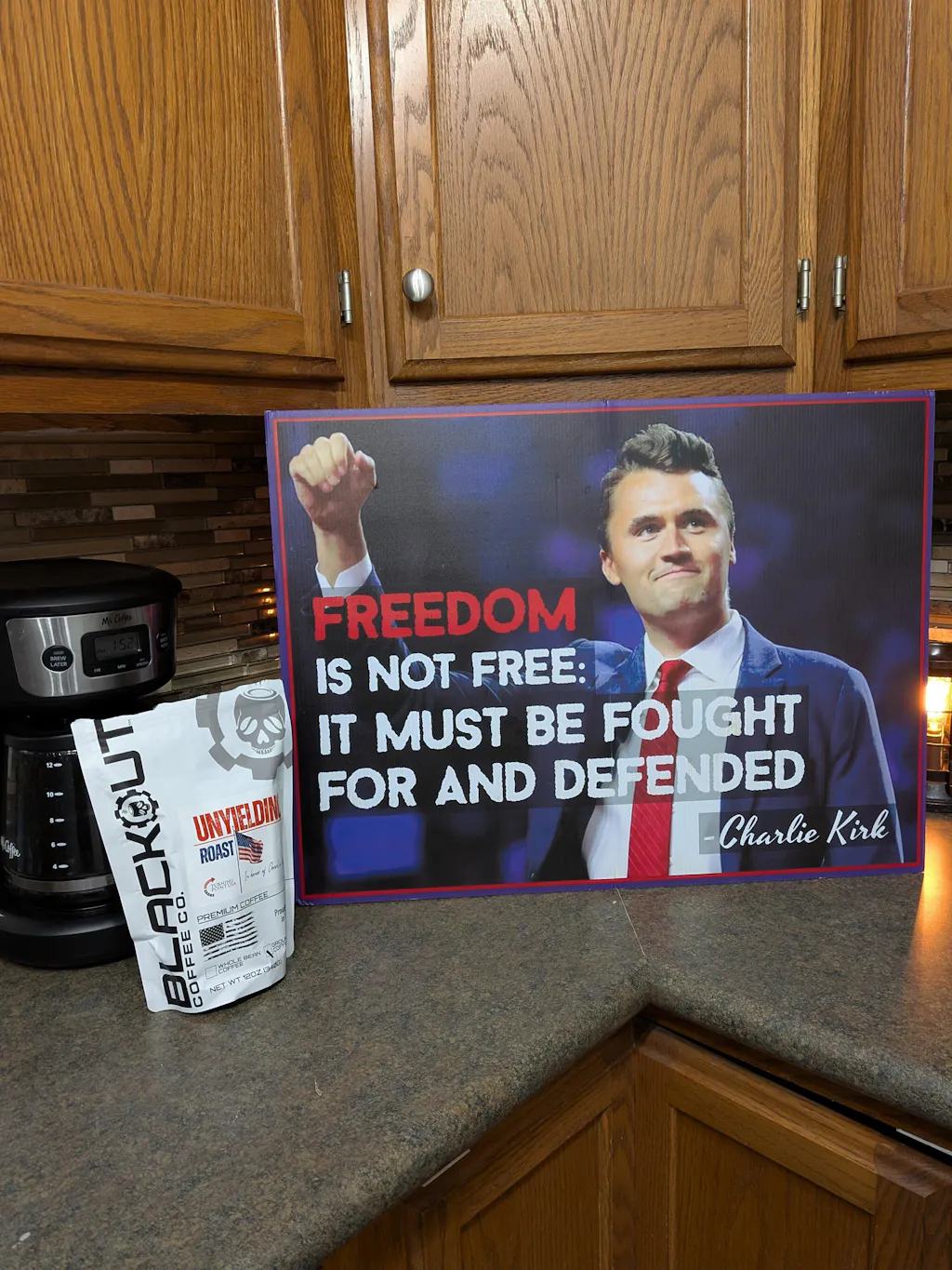 Brew it strong, sip it proud, and join the fight for freedom with Charlie Kirk’s Unyielding Roast. Available now, exclusively at Blackout Coffee.